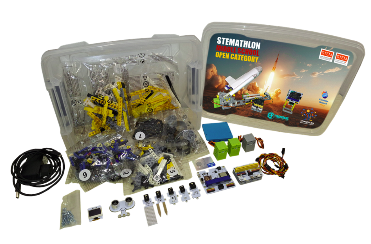 Εδώ θα βρείτε αναλυτική περιγραφή για τον εξοπλισμό που περιέχει το πακέτο (kit) STEMATHLON MIDDLE SCHOOL OPEN Category, Παραδείγματα εφαρμογών με Microsoft MAKECODE και παραδείγματα εφαρμογών με Mind+ και το αντίστοιχο πρόσθετο…