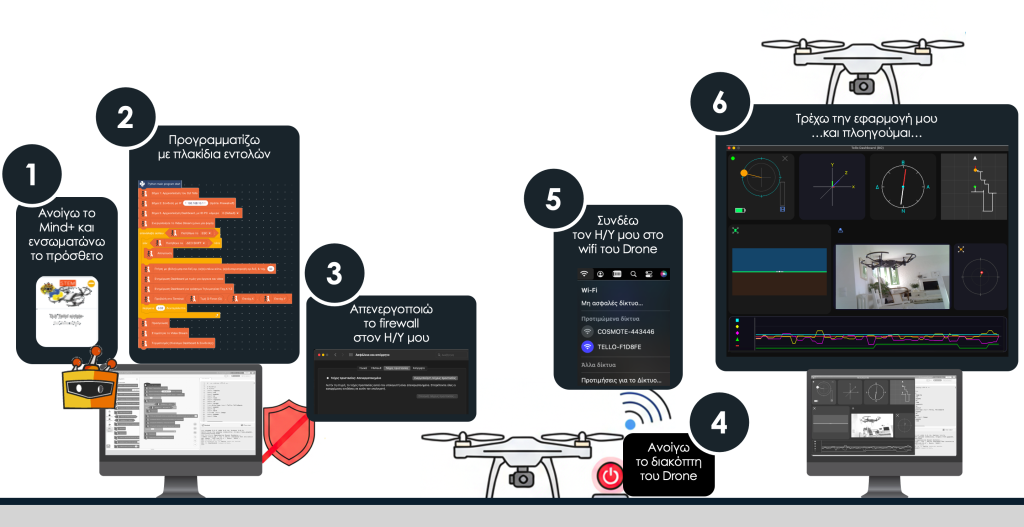 - Πετάξεις το drone με πλήρη έλεγχο από το πληκτρολόγιο του Η/Υ.